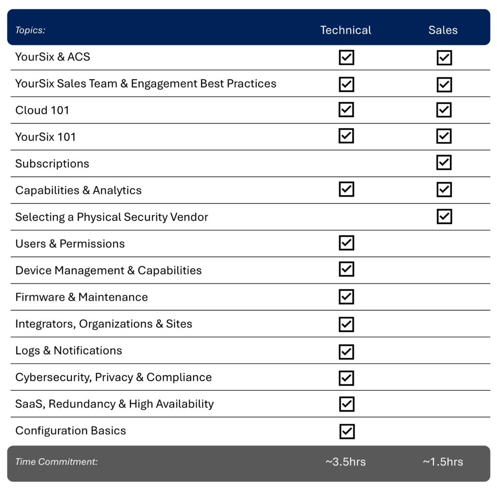 YourSix Academy offers the training and resources you need to become a trusted advisor to your customers. We provide two certification tracks designed specifically for employees of Axis Communications. To enroll in a track, please contact [email protected].