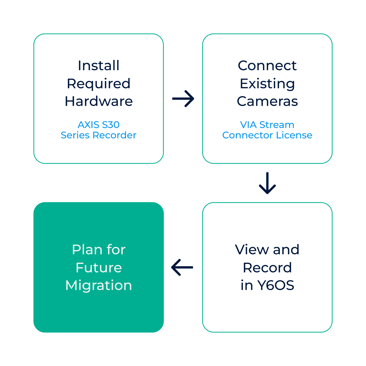 Stream Connector ties your existing camera infrastructure to the Y6OS platform by connecting compatible third-party RTSP and ONVIF devices through AXIS S30 Series recorders. Once integrated, live video is available in the Y6OS Matrix and footage can be recorded and accessed within the platform. This approach allows organizations to gain immediate visibility while planning and executing a phased transition to a fully direct-to-cloud deployment on their own timeline.